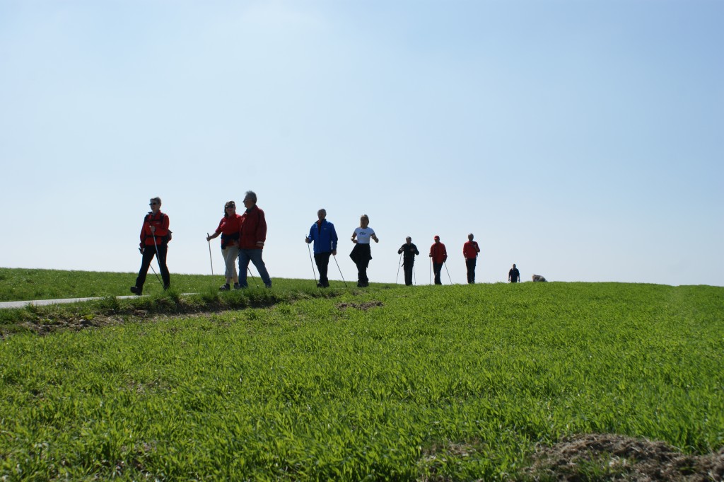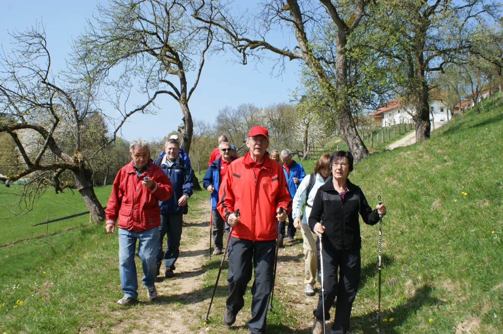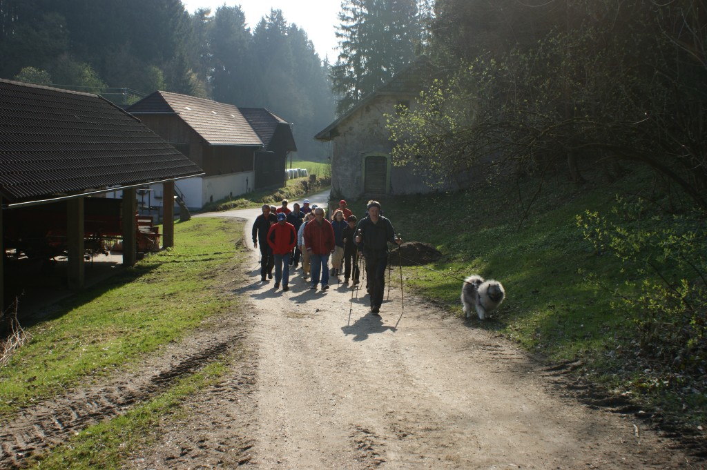 16 Zweibeiner und ein Vierbeiner starteten bei herrlichem Wetter vom Parkplatz Gerling ins Pesenbachtal.