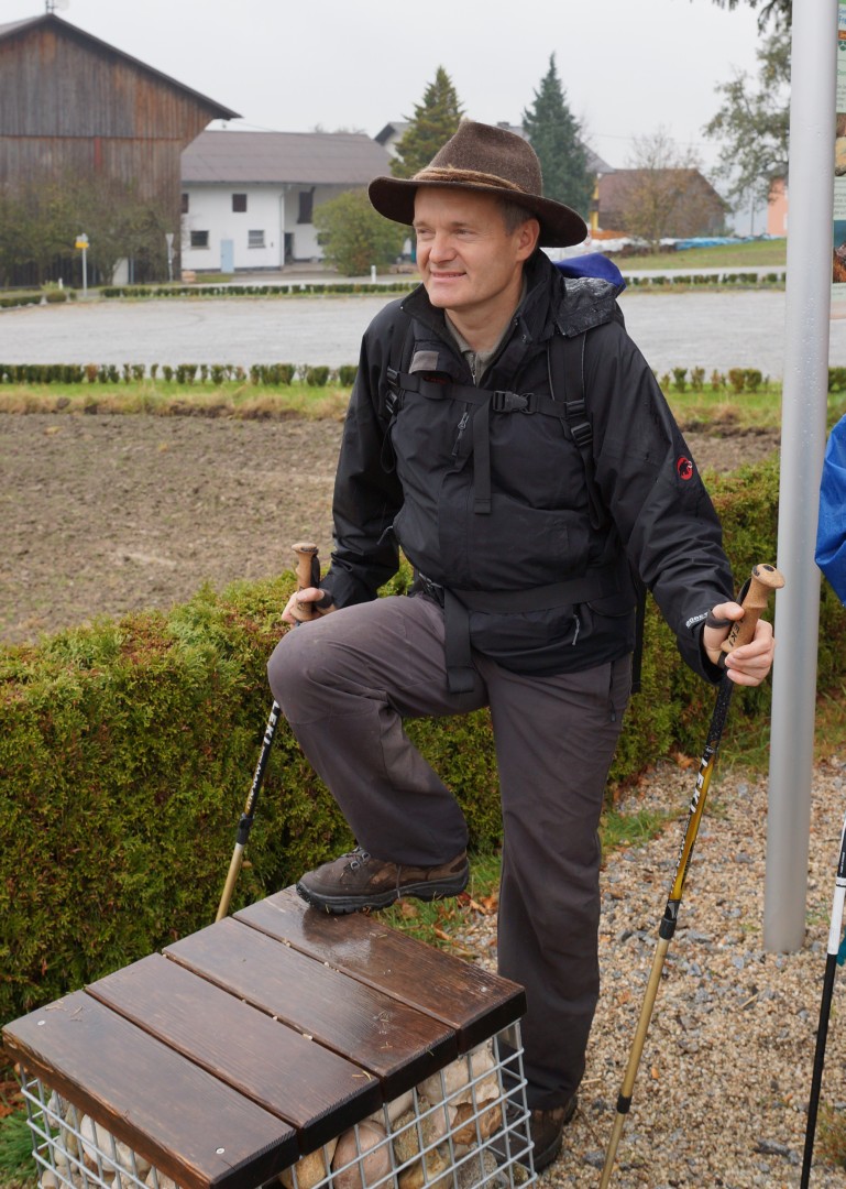 Trotz des mäßigen Wetters machten sich sieben Wanderer auf den Weg in Richtung Passau. Nach der (etwas älteren) Wegbeschreibung war zu erwarten, dass der erste Teil des Weges in keinem besonders guten Zustand ist. Wir mussten feststellen, dass der Weg inzwischen verschwunden ist. Gut ausgerüstet stellte uns das aber vor keinerlei Probleme. Der weitere Weg war einfach zu finden und verlief auf Forstraßen und Asphalt.