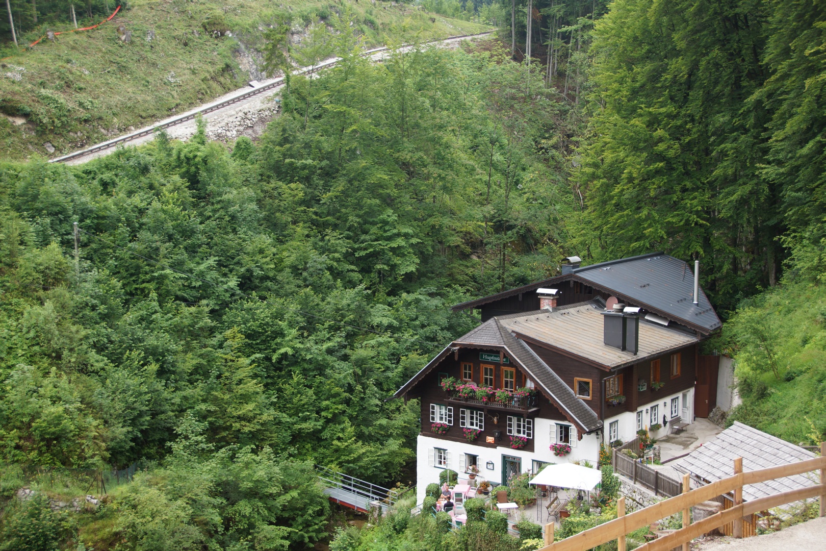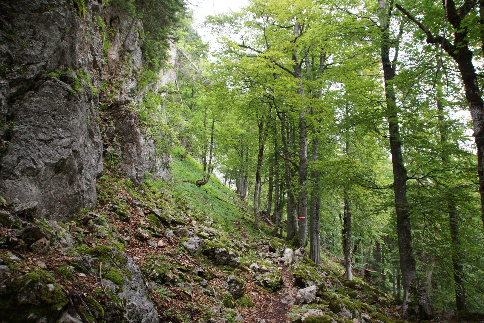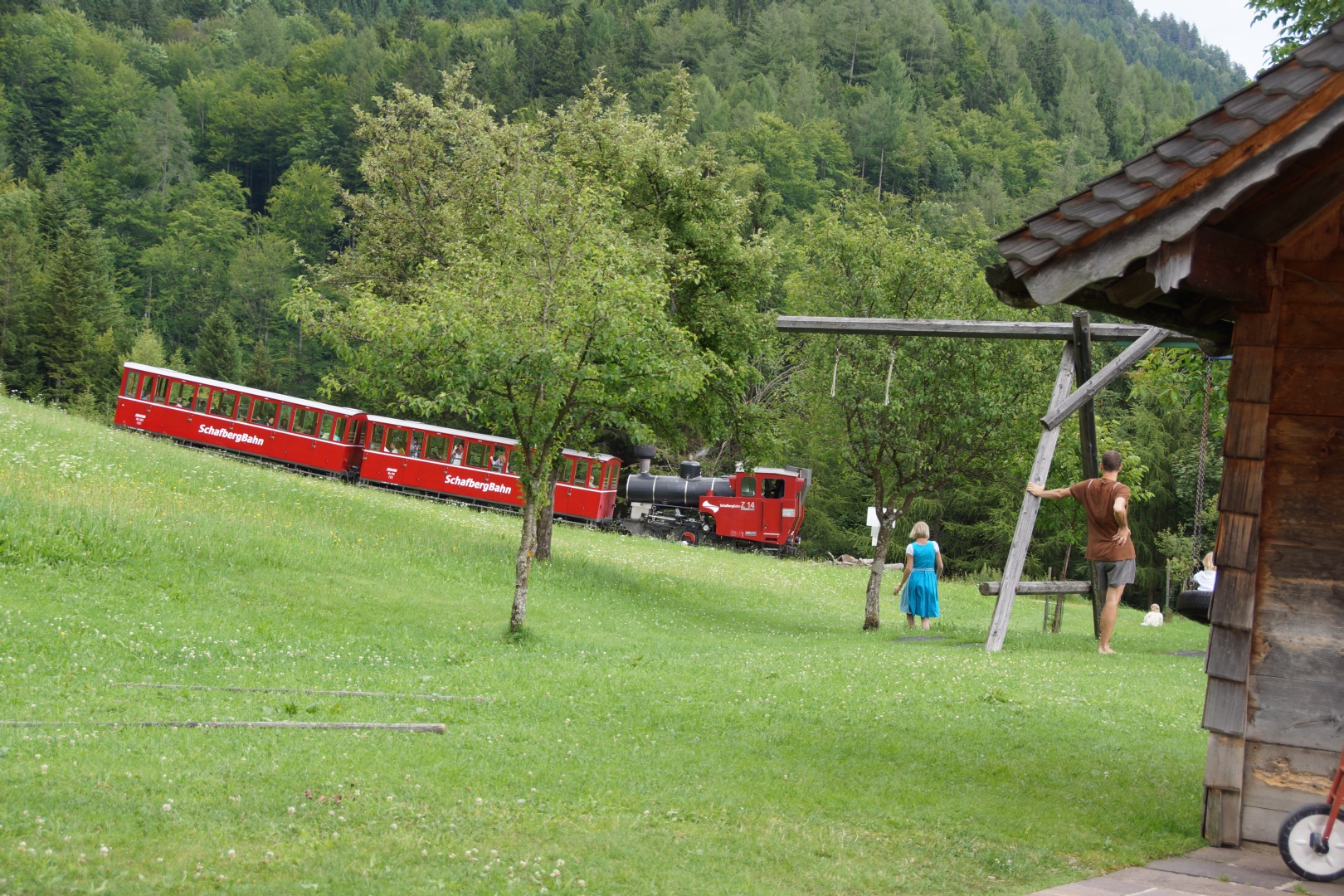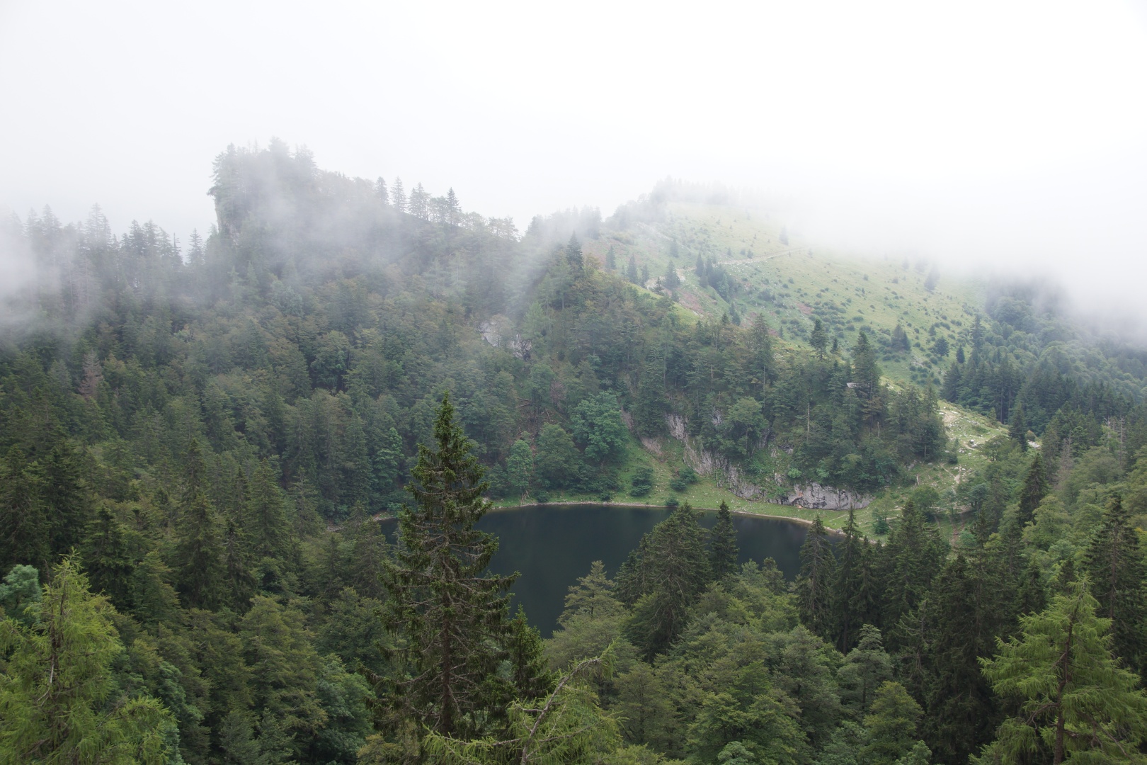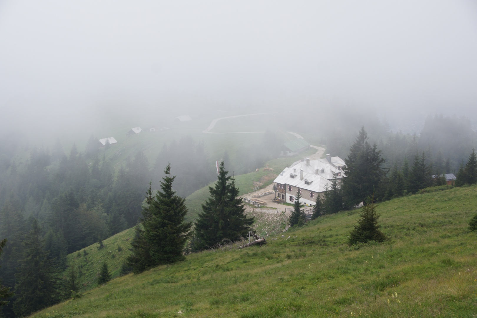 Die vom Wetterbericht vorhergesagten Regenschauer sind zwar ausgeblieben, allerdings war auch von der versprochenen Sonne nichts zu sehen. Wir sind fast den gesamten Weg im dichten Nebel gegangen. Zumindest war es nicht heiß, aber etwas Aussicht hätten wir uns verdient. Eine kleine Gruppe hat die Fahrt mit der Schafbergbahn ausgelassen und ist ins Tal gewandert.