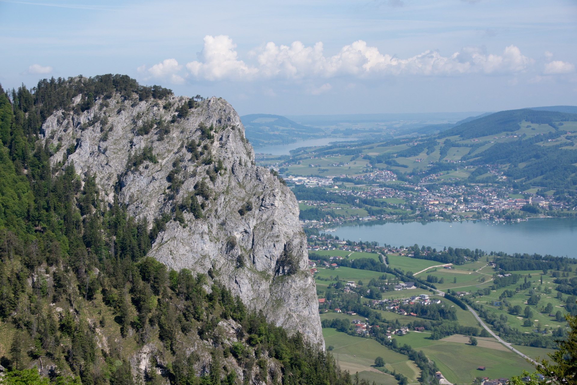 Anfang Juni erklimmen wir die Drachenwand, direkt über den blauen Fluten des Mondsees.