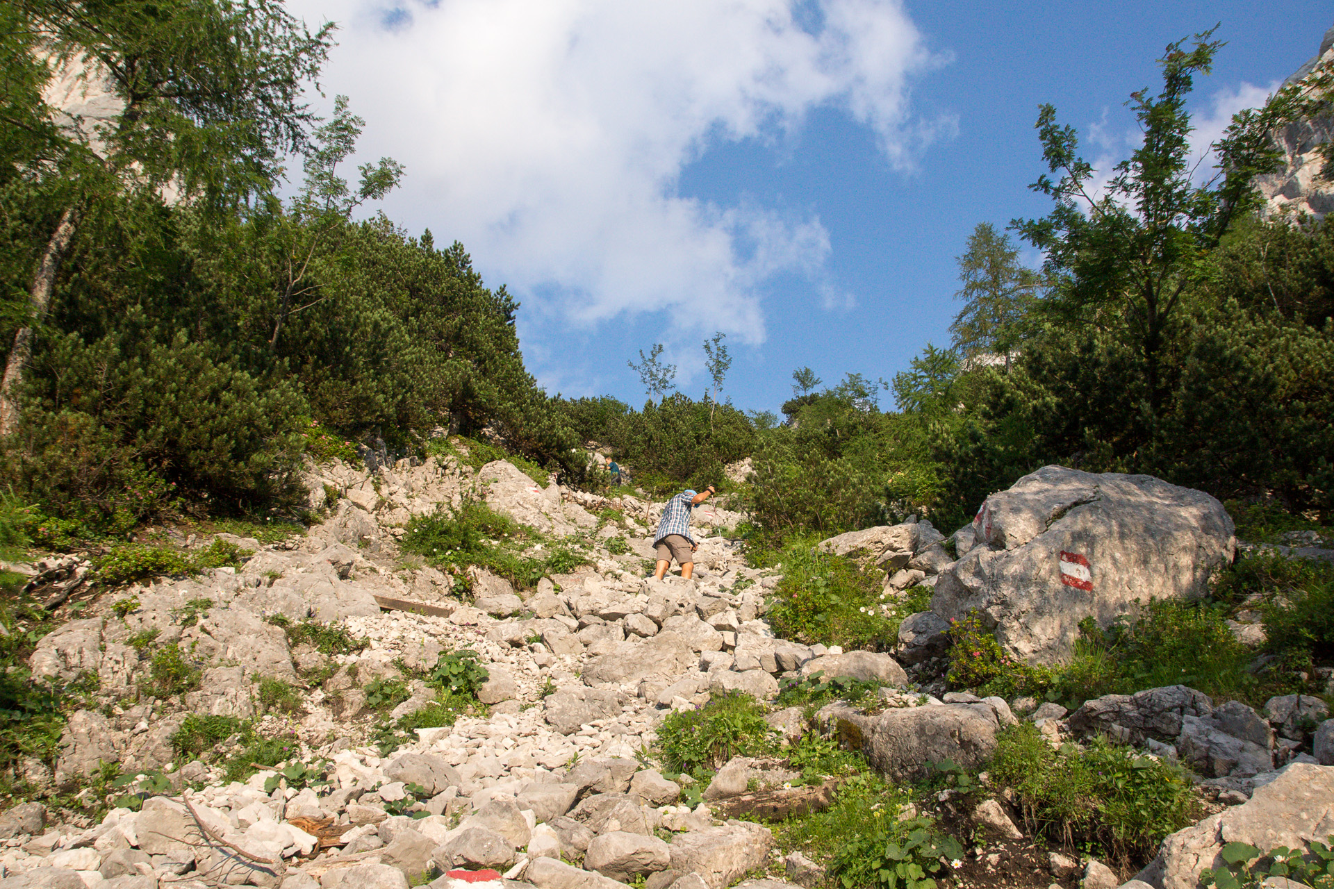 Ausgangspunkt war das Almtalerhaus (Grünau, noch weiter ins Almtal). Der erste Teil des Zustiegs verläuft über einen Forstweg bis zur Materialsailbahn. Dort konnten wir unsere Rucksäcke abgeben und erleichtert den eigentlichen Anstieg zur Welser Hütte starten. Auf einem sehr schönen Weg geht es fast 1000 Höhenmeter bis zur Hütte.