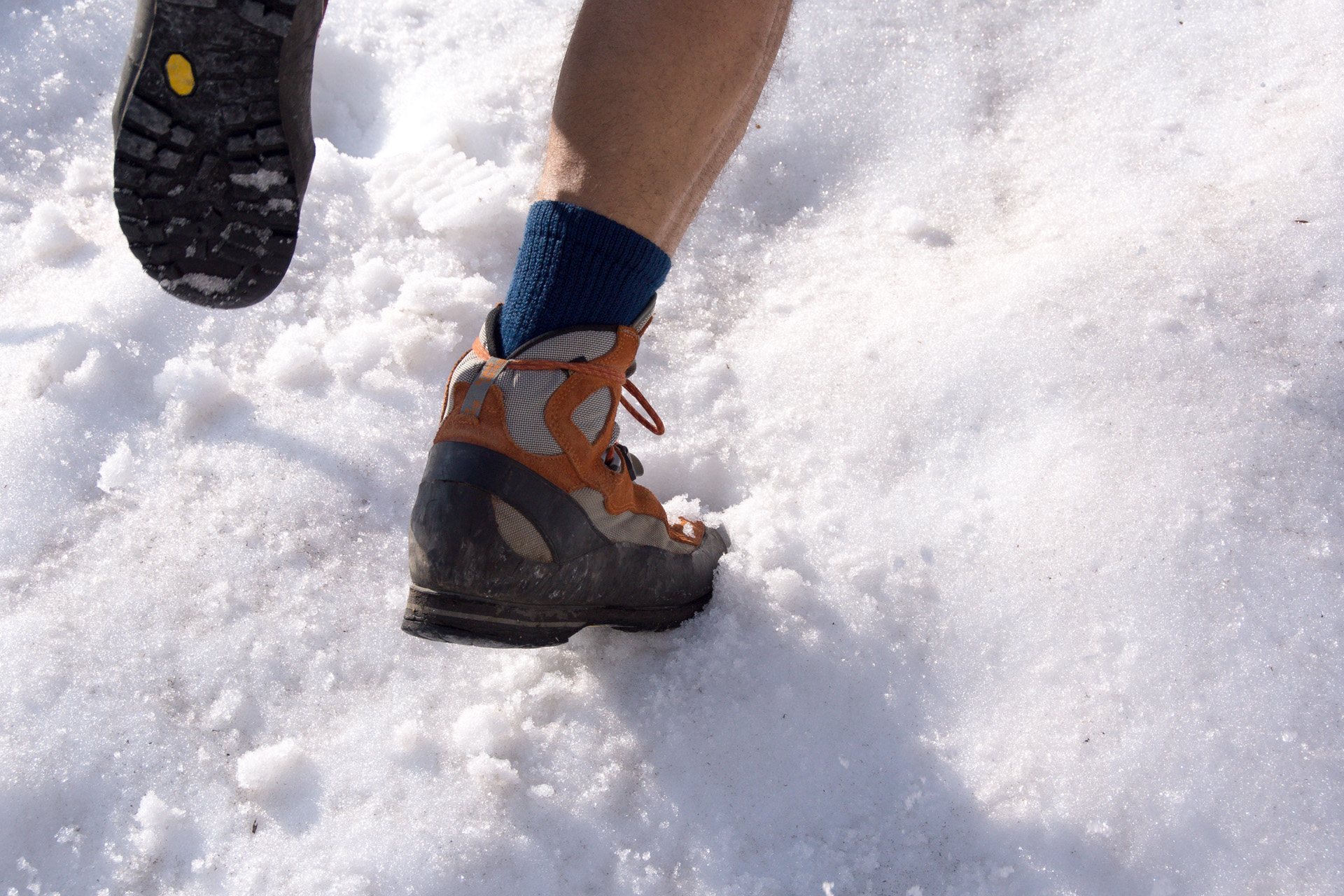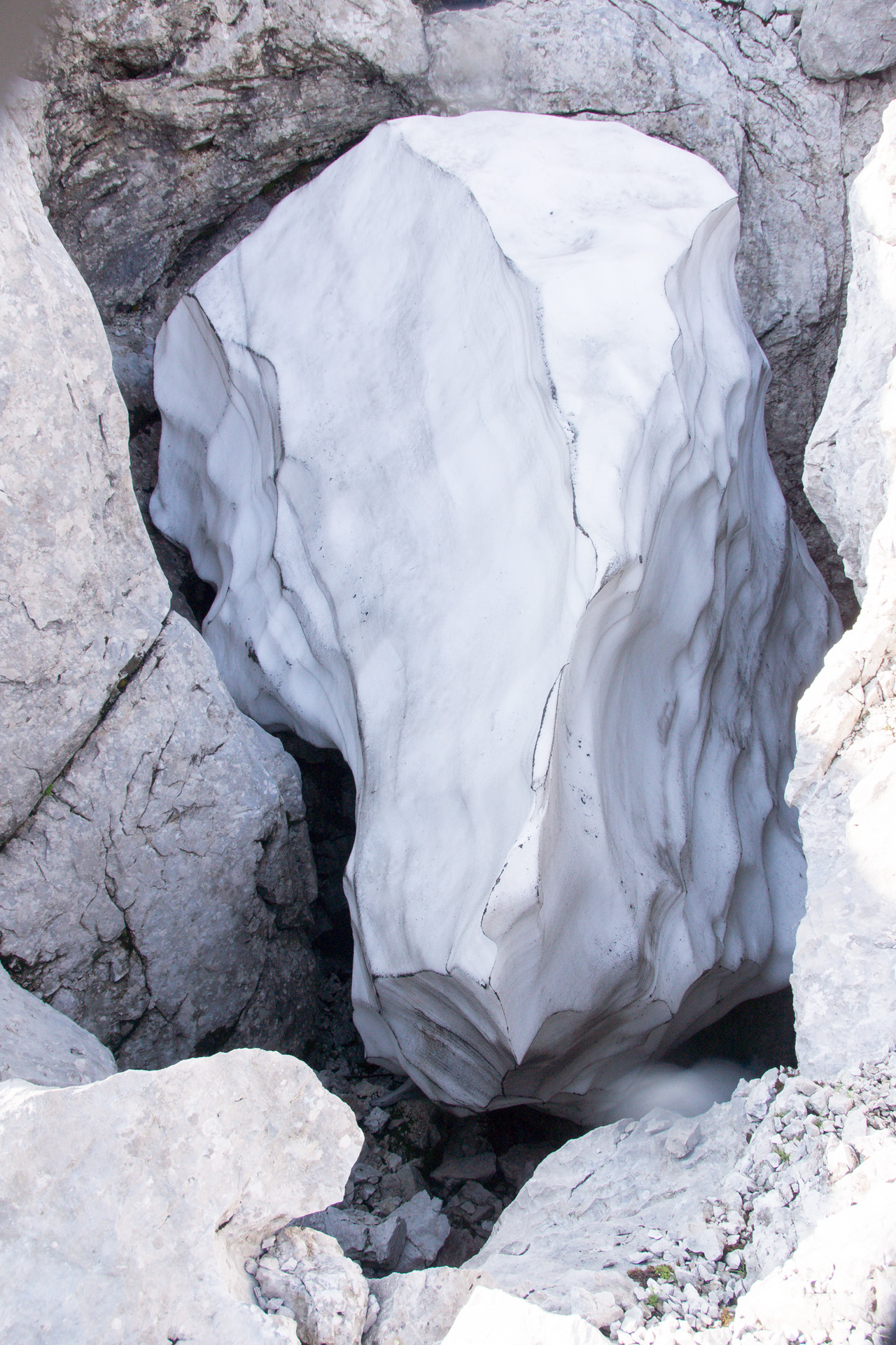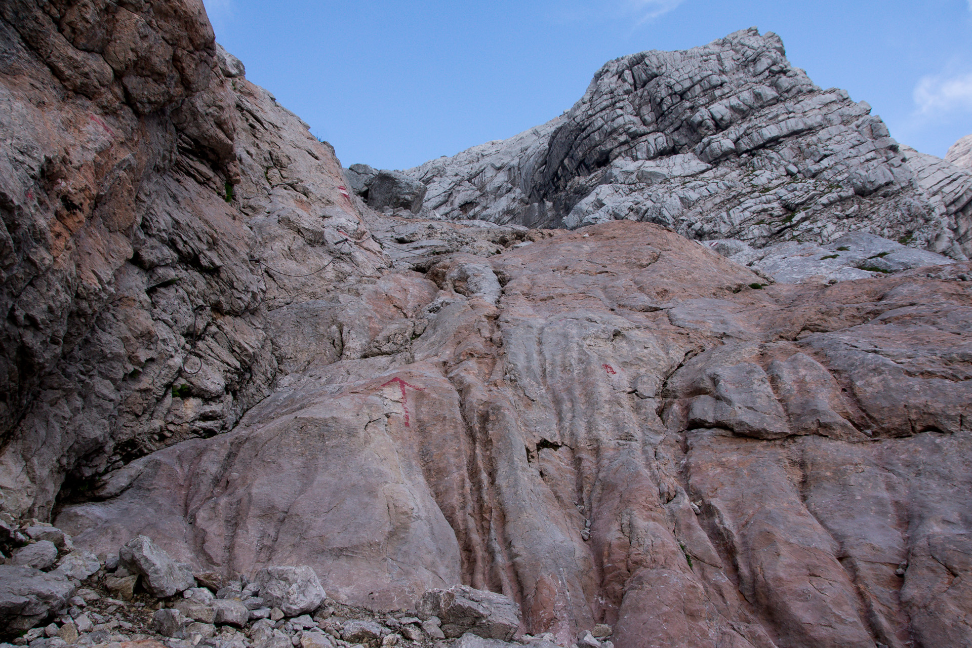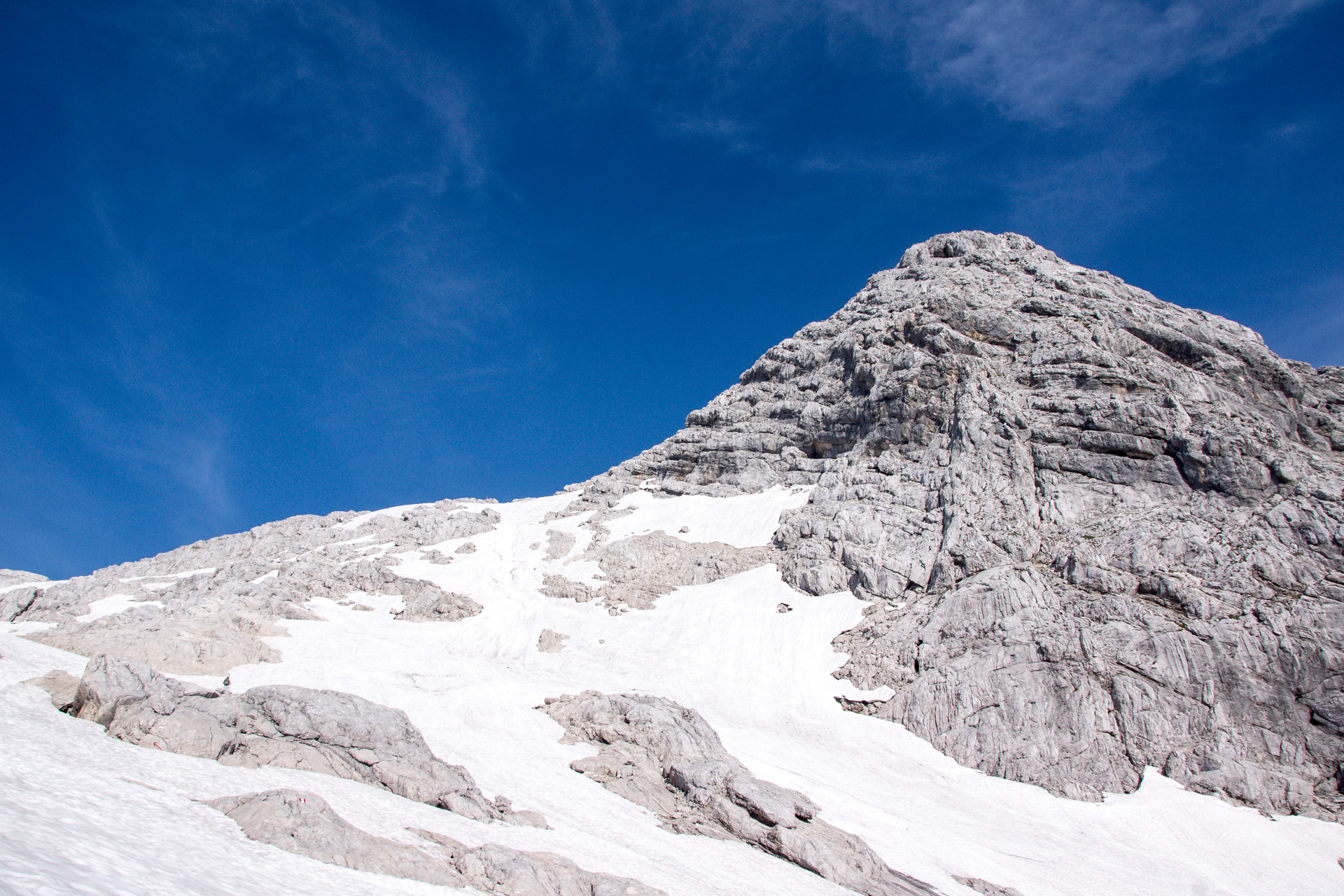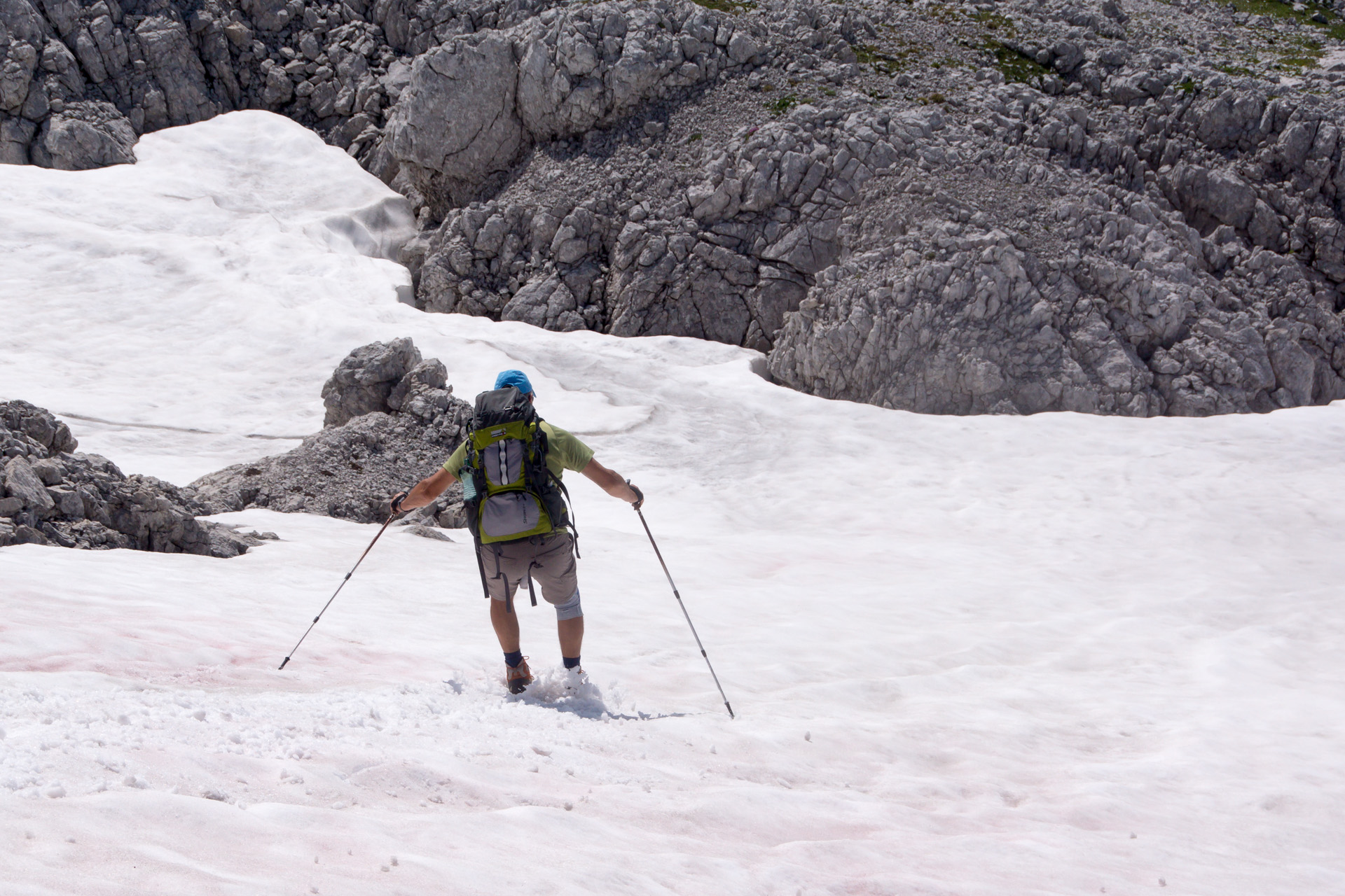 Für den Abstieg wählten wir einen wegen "außen herum" um die steilen Schneefelder zu meiden. Ein paar harmlose Wolken schützten uns vor der prallen Sonne.