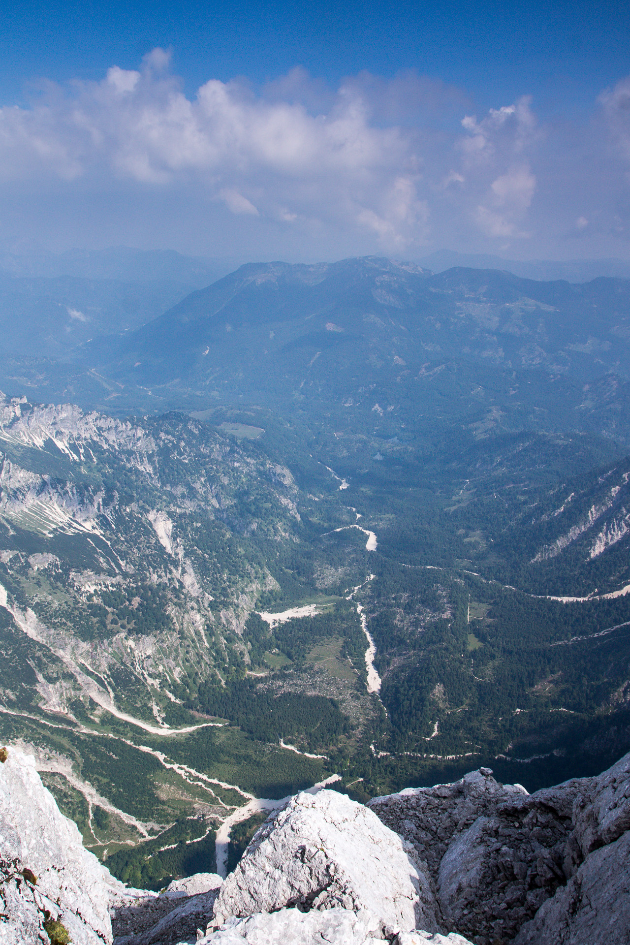 Ein wunderbarer Ausblick - nach Norden ins grüne fast menschenleere Almtal, nach Süden ins steinerne und twl. schneebedeckte Hochplateau des Toten Gebirges.