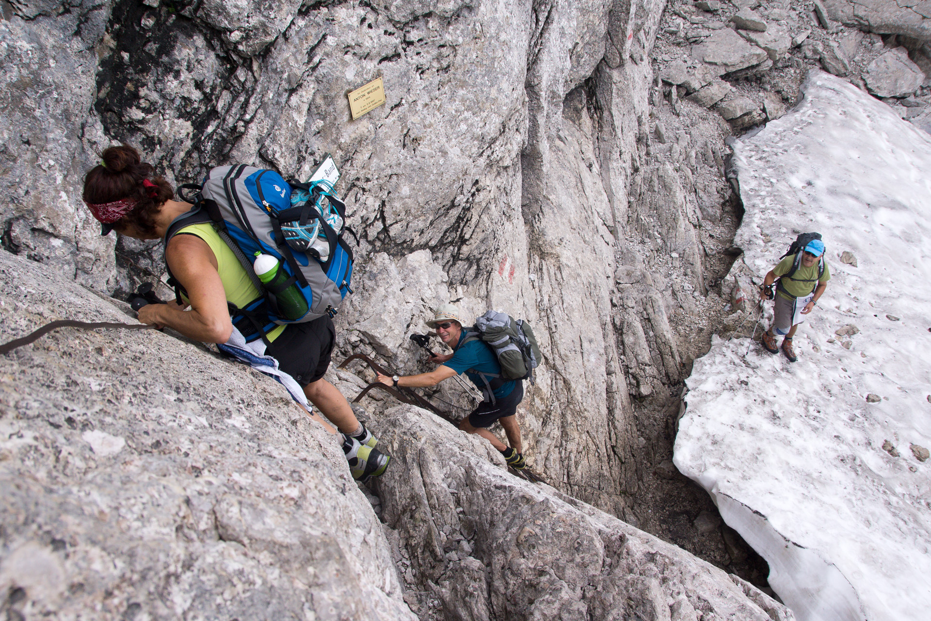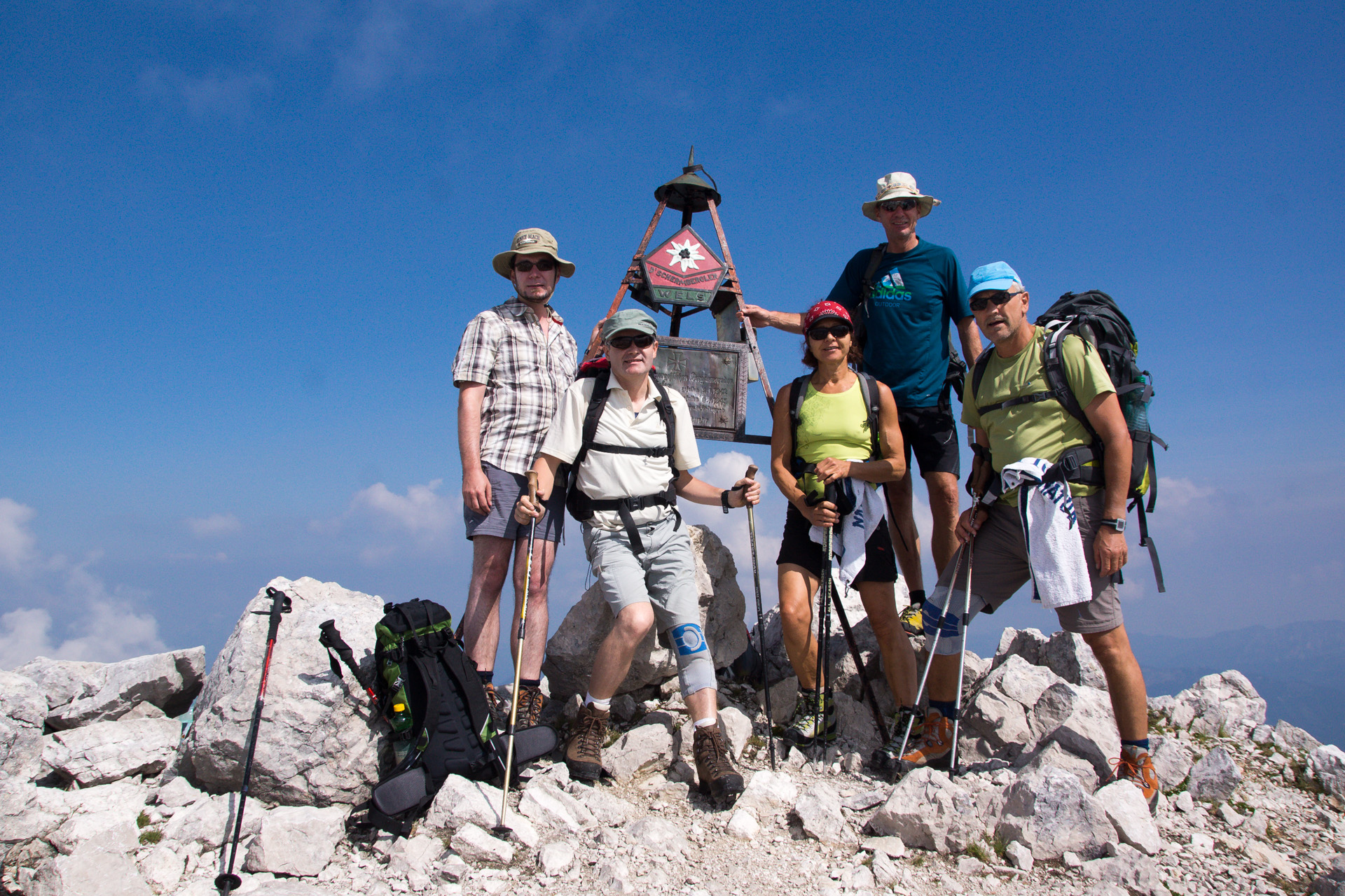 Am zweiten Tag machten sich die 5 Wanderer auf zum Gipfel des Schermberg. 4 folgten dem Hermann Wöhs Steig, einer nahm den Tassilo Klettersteig (leichter als die Drachenwand) - am Gipfel trafen wir uns wieder. Obwohl schon Mitte Juli waren noch eine Schneefelder zum Überqueren.