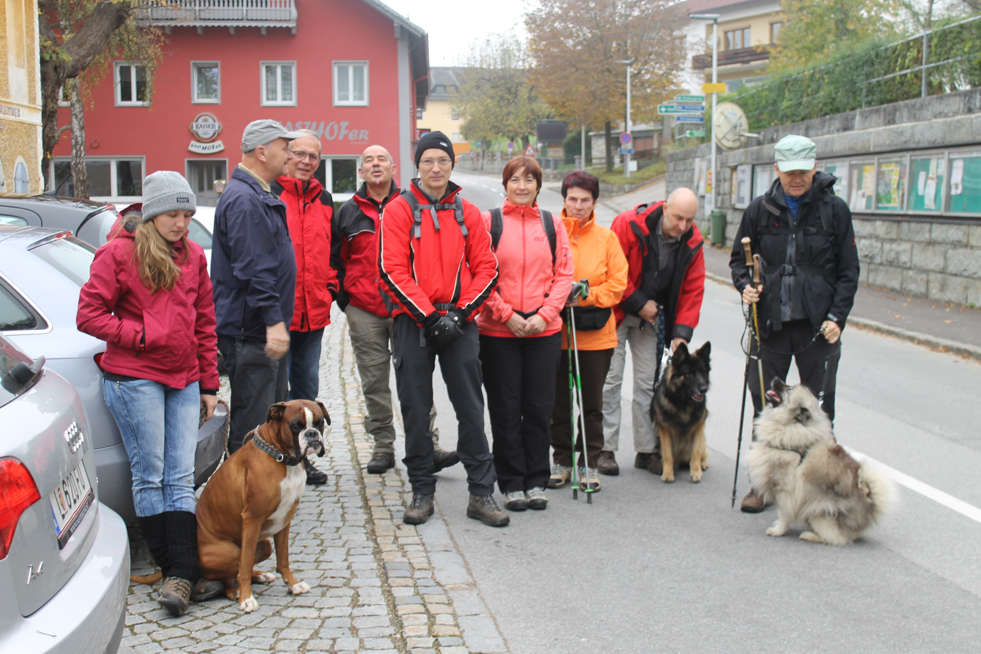 Neun Zweibeiner und drei Vierbeiner machten sich auf den Weg ins Meran des Mühlviertels. Der herbstliche Nebel lichte sich im Laufe der Wanderung.