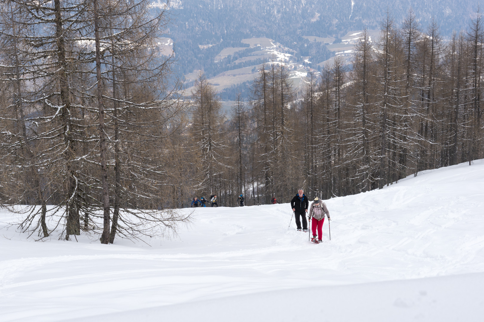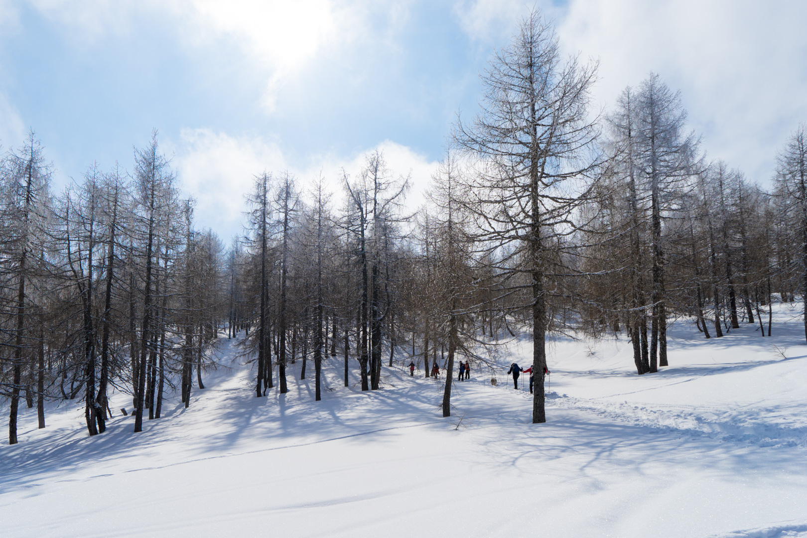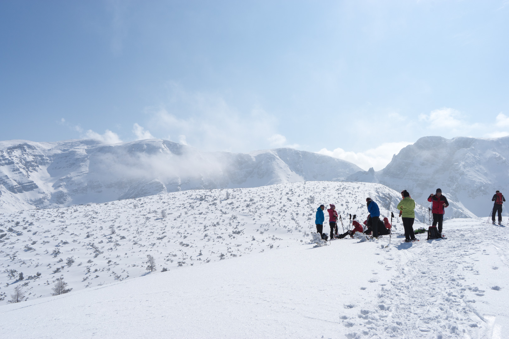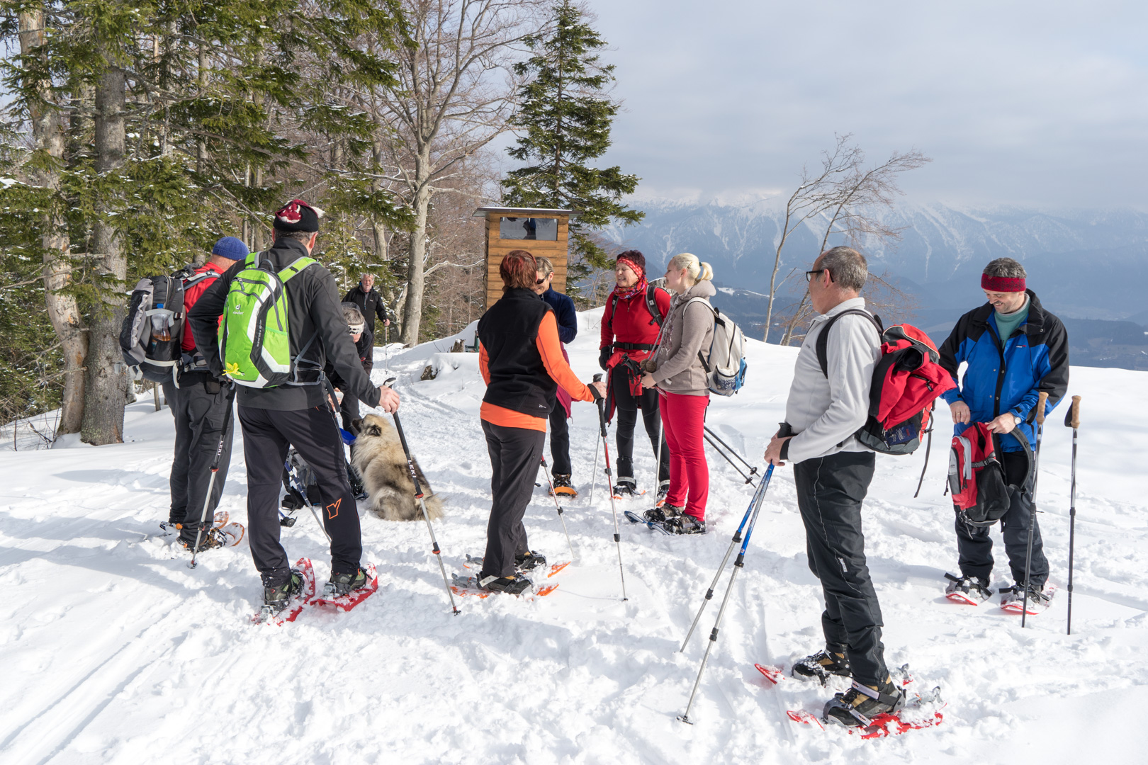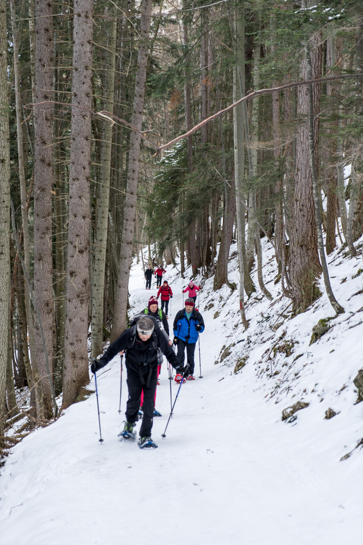 Der Wetterbericht sprach zwar von Wolken und der Möglichkeit von Schneeschauern. Aber vor Ort wurde es stündlich schöner und so konnten wir bald den Sonnenschein beim Anstieg genießen. Der Weg war doch etwas weiter als angenommen, aber das Wetter und die Schönheit der Natur entschädigten für die Anstrengungen.