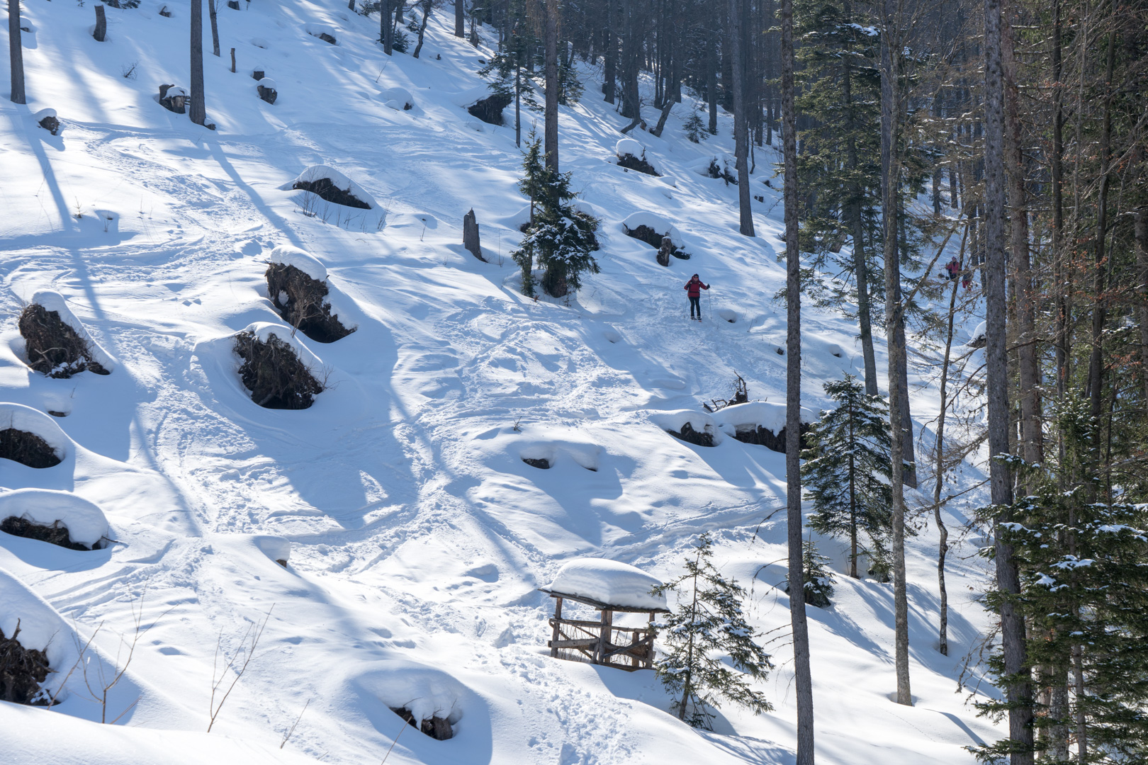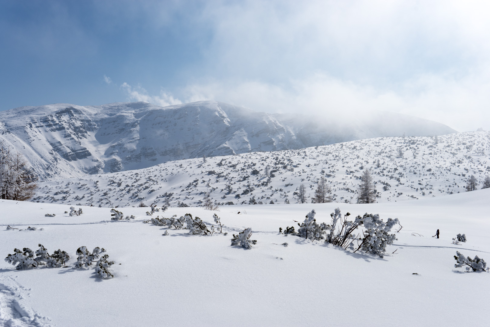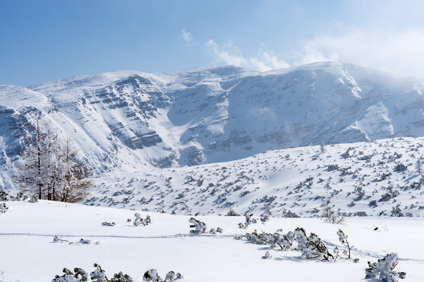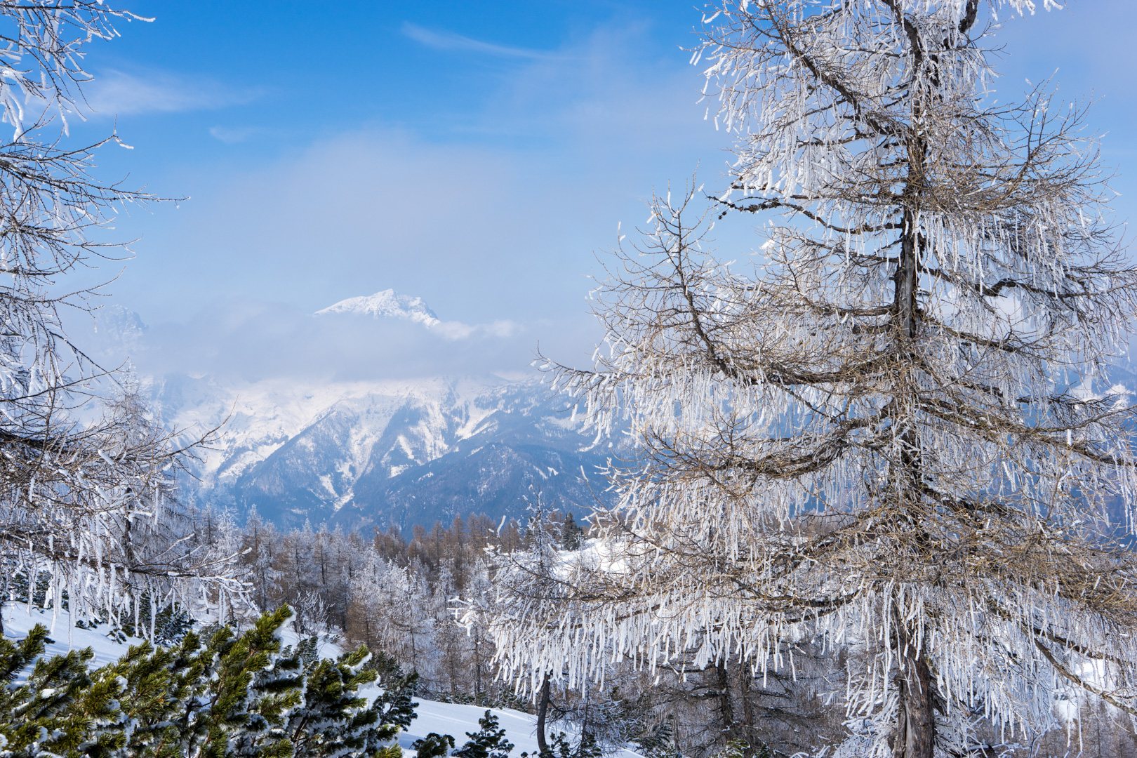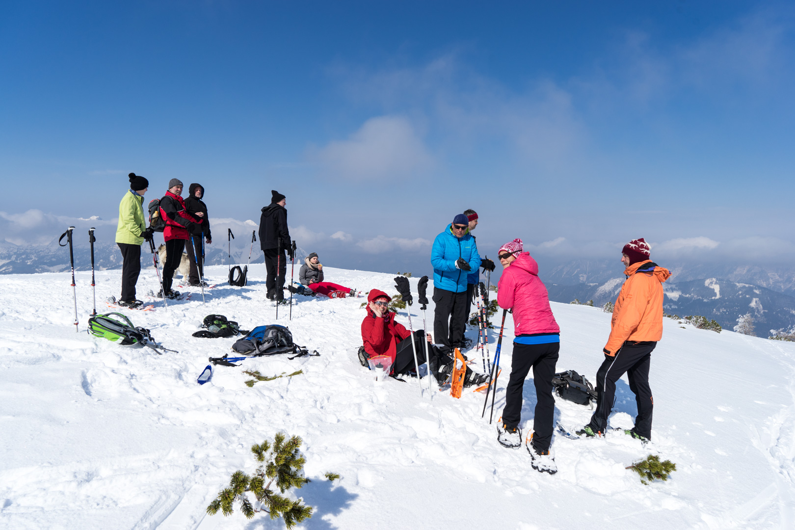 Der Wetterbericht sprach zwar von Wolken und der Möglichkeit von Schneeschauern. Aber vor Ort wurde es stündlich schöner und so konnten wir bald den Sonnenschein beim Anstieg genießen. Der Weg war doch etwas weiter als angenommen, aber das Wetter und die Schönheit der Natur entschädigten für die Anstrengungen.