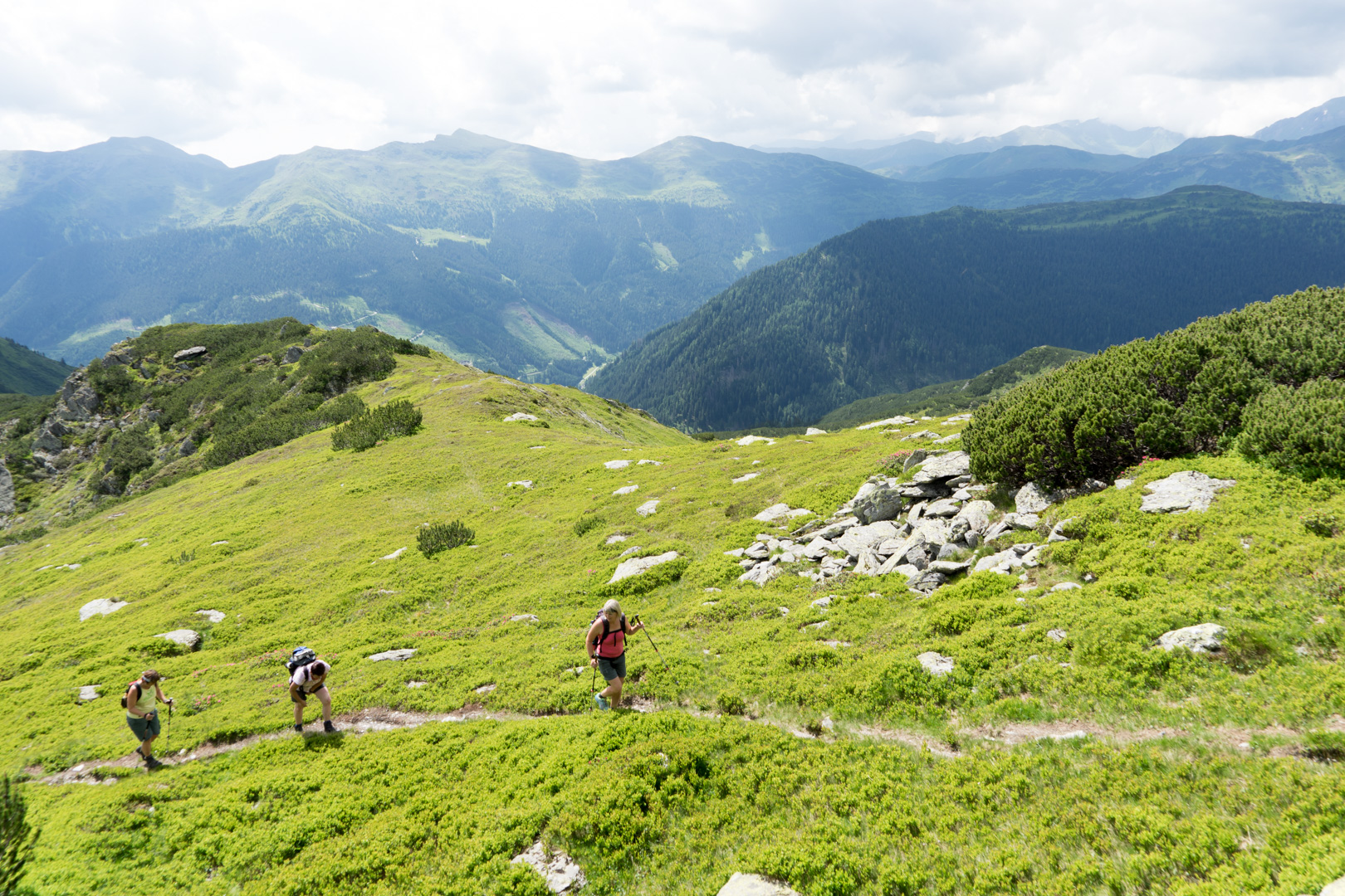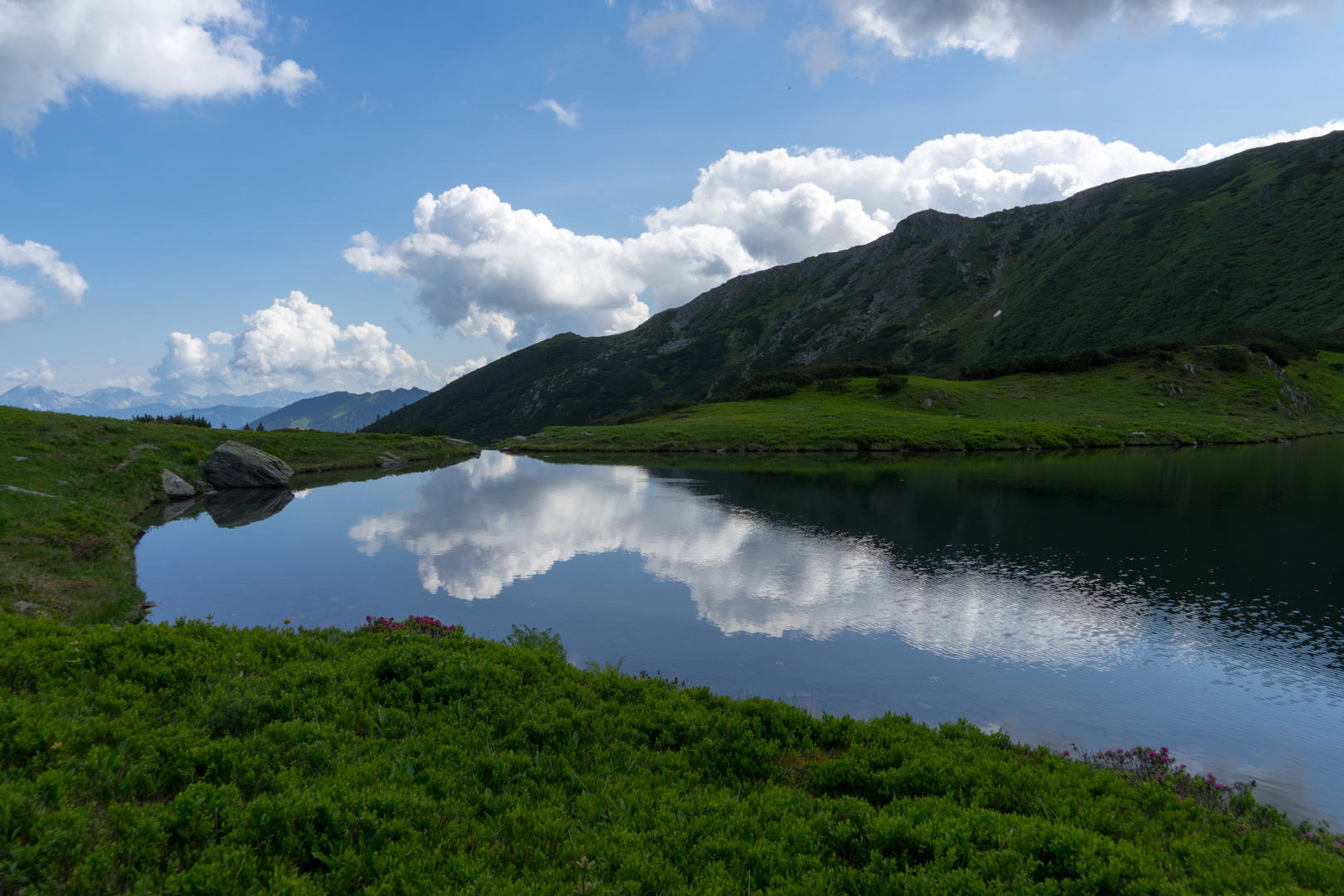 Anfang Juli blüht der Almrausch auf der Seekoppe. Die Seekoppe ist ein Gipfel über einem Bergsee in den Rottenmanner Tauern. Wir fahren mit den Autos von Selzthal nach Oppenberg. Von dort wandern wir über ein Jagdhaus (1455m) entlang dem Riednerbach über Almwiesen bis zum Riednersee (1864m). Anschließend gehts auf den Gipfel (2150m). Wir überschreiten den Gipfel und kehren auf einem anderen Weg zurück nach Oppenberg.