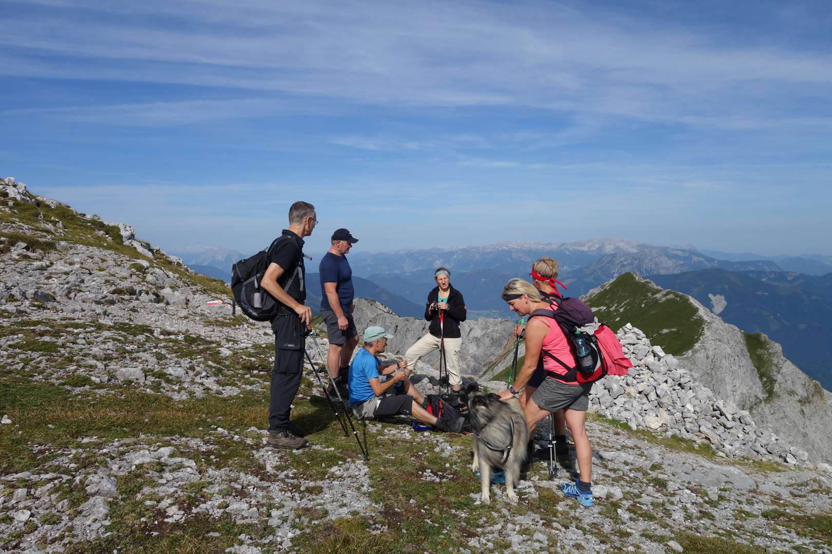 Die Tour in wenigen Worten: Wir waren insgesamt neun Wanderer/innen + ein Hund. Wetter war großartig. Landschaft auch. Berg war nicht schwierig. Ein schöne Tour.