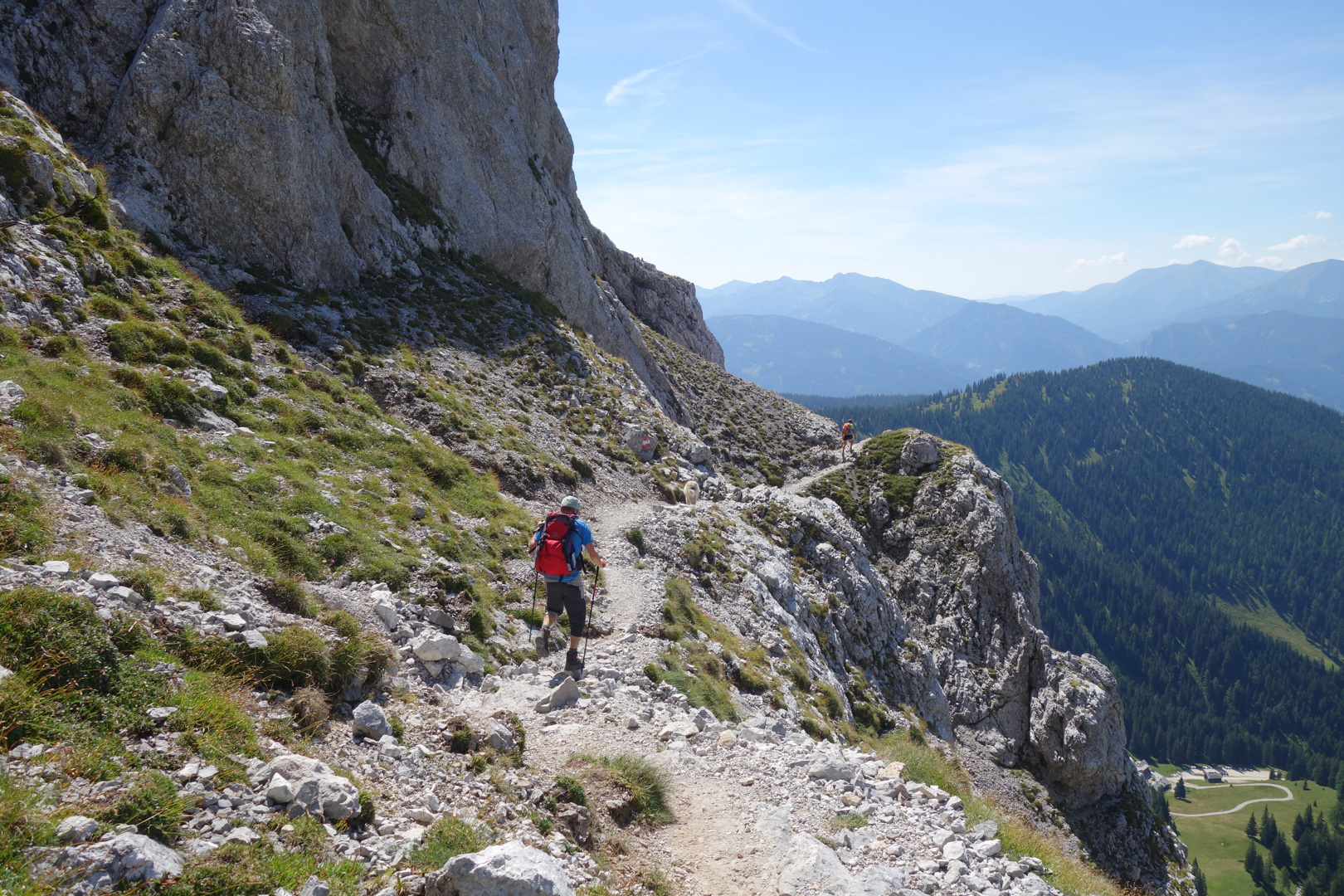 Abfahrt bereits Freitag 13.00 Ortsplatz Kleinzell (Christian Huber). Wir machen schon am Freitag-Nachmittag eine Alm-Berg-Wanderung. Ab ca 15.00 wandern wir von der Kaiserau (1100 m, Parkplatz) auf die Wagenbänkalm und von dort über den Lahngangkogel (1778 m) zur Oberst-Klinke-Hütte. Wanderzeit ca 3 Stunden. Auf der Hütte gibt es Abendessen und Übernachtung.